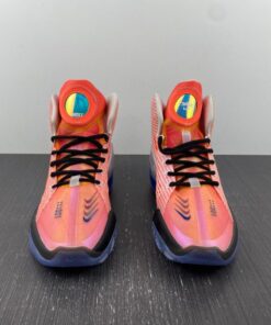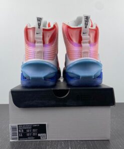 the pair’s inspirations are not outwardly apparent. The colorway, though, does proffer an auspicious feel as the brunt of the upper is dressed with a reddish orange shade. Over top the side, the latter accents with a grid reminiscent of knit, its off-white shade only aiding the hand-crafted illusion. And thanks to the sole and adjacent markings, futuristic elements begin to take over, highlighted in hits of blue and black. Additionally, Chinese markings neighbor as well, pressed along the midsole and pull tab.