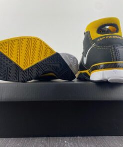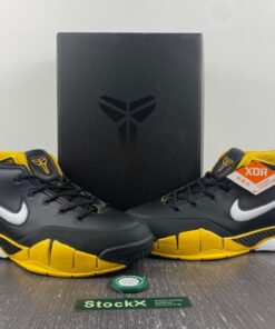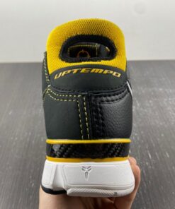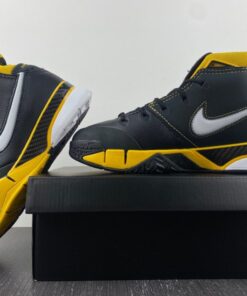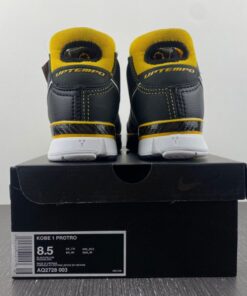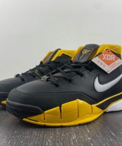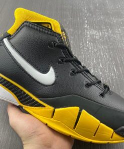 Dressed in a Black, White and Varsity Maize color scheme. This Nike Kobe 1 Protro comes with a newer version of Nike Zoom Air cushioning and a modified carbon fiber shank plate. Featuring a Black leather upper, White Swoosh logos and Yellow Maize accents.