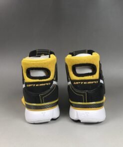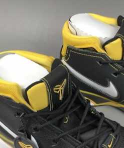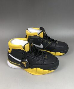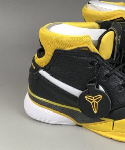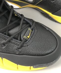 Dressed in a Black, White and Varsity Maize color scheme. This Nike Kobe 1 Protro comes with a newer version of Nike Zoom Air cushioning and a modified carbon fiber shank plate. Featuring a Black leather upper, White Swoosh logos and Yellow Maize accents.