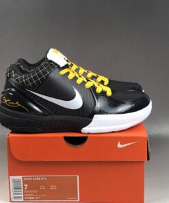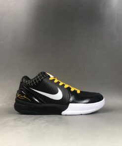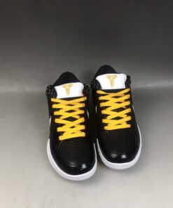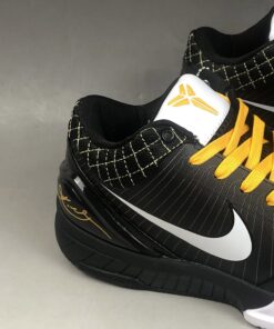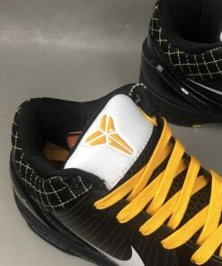 A look at the Zoom Kobe IV months ago including this Black, White, and Del Sol colorway. Now it’s time to share some detailed pictures of this colorway of Nike Basketball’s lightest basketball shoe ever. This Kobe IV comes in a Black upper accented with a White Swoosh and forefoot outsole as well as hints of this new Del Sol (Yellow) color to help match the Lakers’ uniform. Additionally for those of you who want to separate yourselves from the other guys, you can switch up the White laces for Yellow ones when you pick these up.