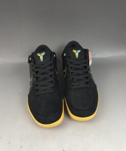 This upcoming offering comes dressed in a Black, Aurora Green, and University Gold color scheme. It features a Black upper with snakeskin texture overlays as a nod to the Black Mamba. Other details includes split tongue logo and Swooshes in Green and Gold atop a Gold and Black rubber sole.