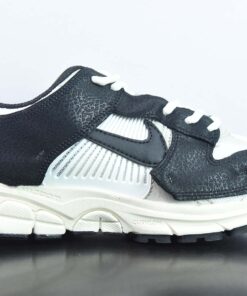 The Nike Zoom Vomero 5 “Timeless” isn’t simply influenced by the Dunk Low. To be more accurate, the pair is obsessed with the sneaker’s very image, affixing the panels of its muse to its own construction. Dyed in black, these leather overlays — which wrap the toe box, eye stays, and heel — are attached to the upper via the lace unit. Underneath, the runner would be entirely standard if not for the spliced tongue label and pack-exclusive branding along the insoles.