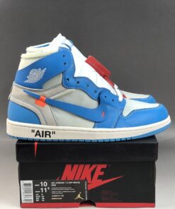The Off-White x Air Jordan 1 “UNC” AQ0818-148 is a highly sought-after sneaker collaboration between Off-White and Jordan Brand. Featuring a classic University of North Carolina colorway, this shoe combines Off-White’s signature deconstructed aesthetic with the iconic Air Jordan 1 silhouette. With premium materials and attention to detail, this sneaker is a must-have for any sneakerhead or streetwear enthusiast. Don’t miss your chance to own a piece of sneaker history with the Off-White x Air Jordan 1 “UNC” AQ0818-148.