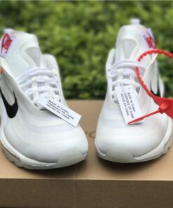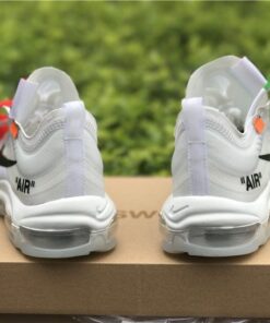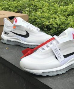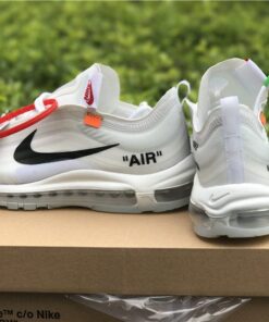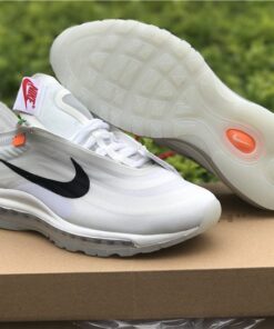 The ravishing all-white upper is highlighted through the Nike x Off White Air Max 97 White sneakers. This pair brings out premium white synthetic upper construction while it features the black labelings. It reveals the black Nike Swoosh, black “AIR” prints, and black Off-White signature text. Nike Air Max 97 Off White White sneakers also carry the orange tab on the ankle collars, Nike tag on the tongue, and red zip ties. This pair is completed with thick white midsoles, visible Air Max soles, and translucent rubber outsoles. Bring out the real elegance of the pair as you walk it through the streets.