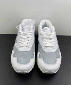 Brighter neutral tones are the focal point of this collab’s presentation. Covering most of the upper half is a clean white hue that lands on the tongues, overlays on the toe boxes and quarters as well as the curvy mudguards. Lighter hits of gray act as complementary hits as they spill onto the Swooshes, mesh panels on the toe boxes and collars as well as the co-branded tongues and miniature Nike checks that are embroidered into the forefoot. Midsole pieces are fashioned with an off-white outer which supplies the sneakers with a touch of vintage flair.