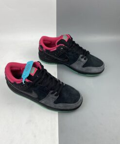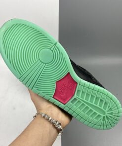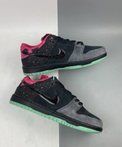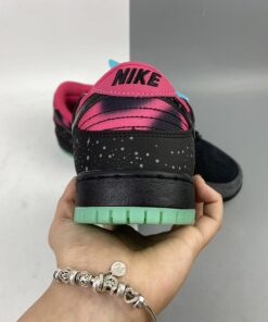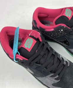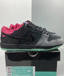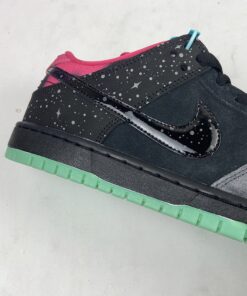 The infamous “Yeezy” colorway on the Dunk High has an actual origin, and it comes from one of the most well-known skate shops/sneaker stores in the States. Premier Skate, located in Michigan, came up with the concept that has its roots in the natural phenomenon known as the Northern Lights; night sky black backdrops and reflective starlight on the heel and swoosh is paired with a glowing outsole and hot pink linings, which are typically viewed at higher altitudes. The custom “wavelength” Premier branding on the insole is on the tongue and insole.