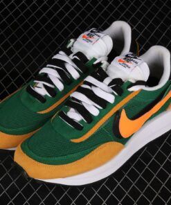 It all starts with that mesh lining which features in a vibrant shade of green. Premium suede overlays contrast in a mustard colourway whilst a dual Swoosh sits proudly against the sidewall. To complete the look, a chunky midsole features whilst dual branding celebrates this Nike and Sacai partnership.