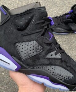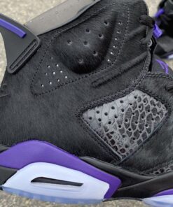 This premium iteration of the Air Jordan 6 features a Black snakeskin upper with pony hair overlays on the heel, side panel, and toe box. Concord accents adds for a nice contrast placed on the Jumpman tongue, heel pull tab, insole, and midsole. Nike Air branded heels atop an icy translucent outsole completes the design.