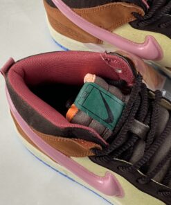 Today, the two palettes are back in the spotlight as they’re also due to dress a Dunk Mid later this Fall. Both, height aside, resemble their low-top counterparts to near exact spec. Suedes, leathers, and much softer textiles run replete throughout the construction, colored in a fashion identical to the aforementioned. Branding-wise, the Swoosh and tongue label still bear a GEL and Tyvek finish, though the text along the medial heel is far less brief. Instead, it display a much larger ingredients list that is as follows: “Nike Sportswear, Social Status, Milky TPU Gel Swoosh, YY Velvet, Diffuse Nubuck, Microbial Textile Lining, Tyvek Label, Round Twisted Poly Laces.