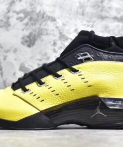 Dressed in a Lightning, Blak and Metallic Silver color scheme. This “Alternate” version of the Air Jordan 17 Low sports a full Yellow-based upper paired with Black and Silver detailing. Co-branding appears on the heels, while having SoleFly branded insoles. As a nod to the OG the release comes with a custom Yellow dust-bag with Jordan and SoleFly logos.