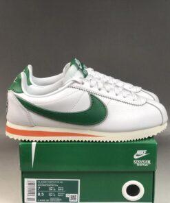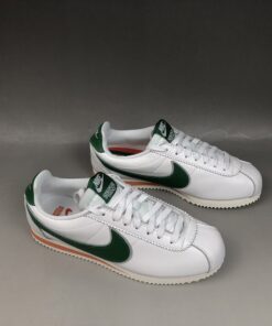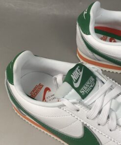 Working on the classic Cortez silhouette, the Stranger Things x Nike Cortez Hawkins High features a premium white leather construction with bold green and striking orange accents featuring throughout, representing the colours of Hawkins High School. The school’s tiger mascot hits the heel, while co-branded detailing arrives on the tongue, emphasising that this isn’t just any old Cortez shoe.
