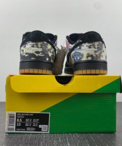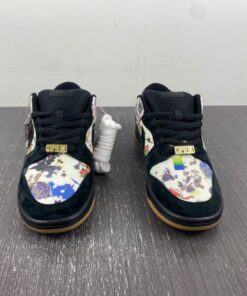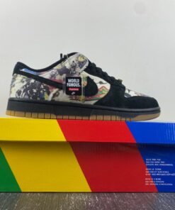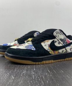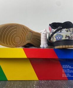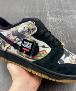 Known as the Supreme x Nike SB Dunk Low Rammellzee, this latest collab between the two powerhouses showcases the work of New York visual artist, Rammellzee. The Supreme x Nike SB Dunk Low Rammellzee comes constructed out of a canvas upper that is decorated with Rammellzee’s artwork spotted on the toe box, quarter panel, collar, and heel overlay. Accompanying the artwork is the Black suede overlays that takes care of the forefoot, eyestay, and Swooshes. Much like other Supreme x Nike collabs, this SB Dunk Low is also given Golden “SUPREME” lace dubraes along with co-branded Nike SB and Supreme hangtags. A Black midsole atop a Gum rubber outsole is also in play. You can also expect an extra set of laces along with special packaging.