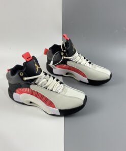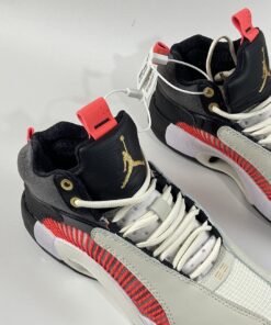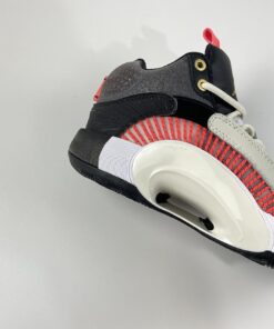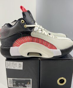Titan’s rendition of the Air Jordan XXXV features a Grey tone covering the forefoot, tongue, and laces paired with Charcoal and Black in the rear and tongues. Gold detailing is used on the Jumpman tongue, upper eyelets, heel labels, and insoles highlighted with Crimson contrasting accents. Titan 22’s logo can be found debossed on the lateral heel and right insole to complete the design.