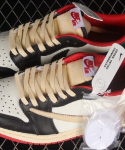The Travis Scott x Air Jordan 1 Low OG University Red Black White is a highly coveted sneaker collaboration between rapper Travis Scott and Jordan Brand. Featuring a bold red, black, and white colorway, this shoe combines premium materials with unique design elements for a standout look. With the iconic Air Jordan 1 silhouette and Scott’s signature Cactus Jack branding, this sneaker is a must-have for any sneakerhead or fan of Travis Scott’s music.