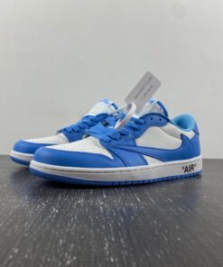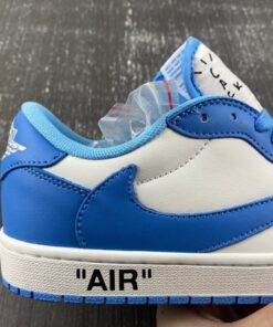 The Travis Scott x Air Jordan 1 Low White/Blue is a highly coveted collaboration between the rapper and the iconic sneaker brand. Featuring a clean white and blue colorway, these sneakers are a must-have for any sneakerhead or Travis Scott fan. With premium materials and the signature Jordan 1 silhouette, these shoes are sure to turn heads wherever you go.