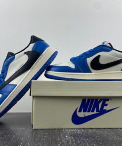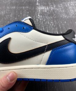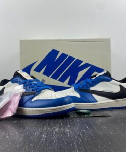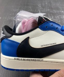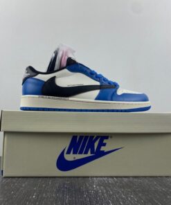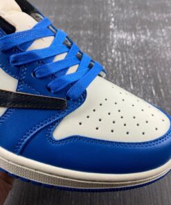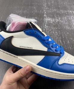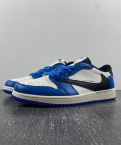 The Travis Scott x Air Jordan 1 Low White Blue Black is a stylish and unique sneaker collaboration between rapper Travis Scott and the iconic Air Jordan brand. Featuring a sleek white, blue, and black colorway, these sneakers are sure to turn heads wherever you go. With premium materials and the signature Air Jordan comfort and quality, these shoes are a must-have for any sneakerhead or Travis Scott fan.