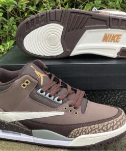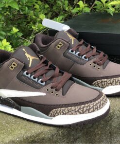 While we wait for the Nike SB Dunk and the Air Max 270 React from Travis Scott, we just got a good look at the Air Jordan 3 that may be coming soon. Although not confirmed for a general release, it is very possible the sneakers drop sometime this year. As mentioned above, this Jordan 3 arrives with Travis’s expertise at its core. Featuring the “Mocha” look we have all come to love, the upper comes equipped with an arrangement of materials like suede, leather, and canvas. Brown floods the upper while black laces contrast the mocha colorway rather well. White Nike Air branding is placed in on the heels that match perfectly with the white midsole. A black outsole then finishes off the design.