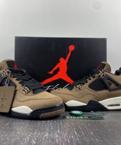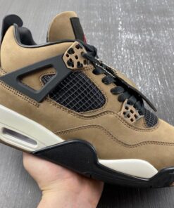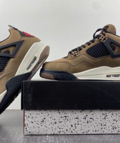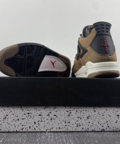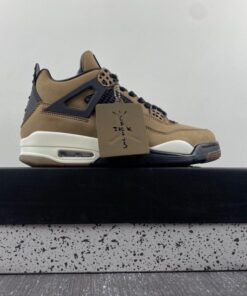 The next Air Jordan 4 by Travis Scott, aka Cactus Jack comes highlighted with an Olive nubuck upper with Black accents. Following we have mismatched Black and White midsoles while Olive runs across the outsole. What most will think is the highlight is both Nike Air and Cactus Jack branding on the heels.