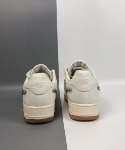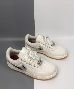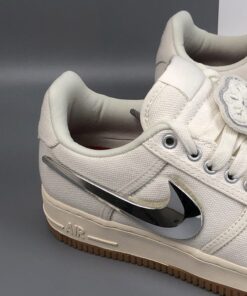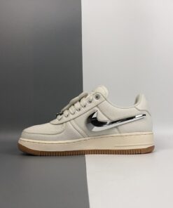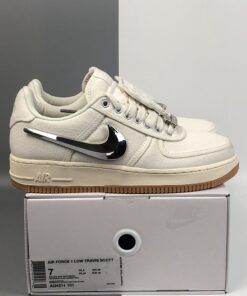 Dressed in a Sail and Gum color scheme. This Nike Air Force 1 features its usual canvas upper, set of Swoosh velcro patches and logo patches that go atop the laces. A Red insole with both Nike and Travis Scott branding completes the design.