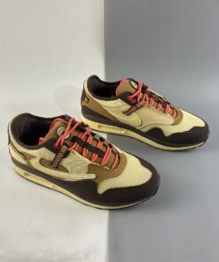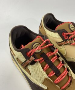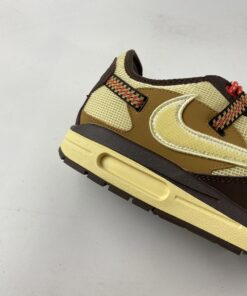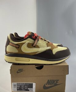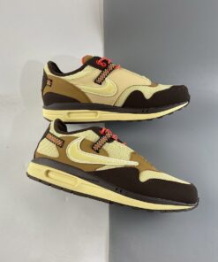 This offering of Travis Scott’s Nike Air Max 1 features a Light Green mesh upper paired with Brown overlays along with the Travis’ signature reverse Swoosh on the lateral side. Other details include a new “Cactus Jack” logo appearing on the tongues and heels.