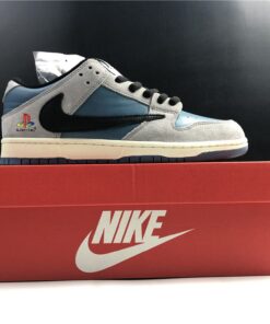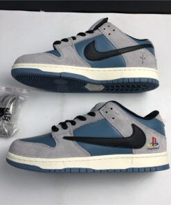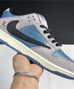 The Travis Scott x PlayStation x Nike Dunk Low appears to feature a two-tone leather upper with Scott’s now-signature backwards Swoosh on the side. Towards the heel, we then see the PlayStation logo, which seemingly signals the collab.
