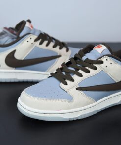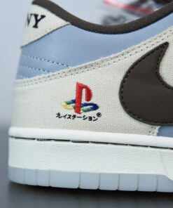 The Travis Scott x PlayStation x Nike Dunk Low appears to feature a two-tone leather upper with Scott’s now-signature backwards Swoosh on the side. Towards the heel, we then see the PlayStation logo, which seemingly signals the collab.