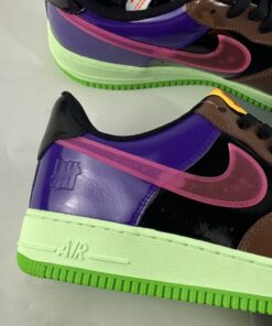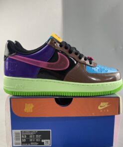 Nostaligc energy is present through its multi-colored arrangement of blue, pink, brown, purple and black panels that are translated from its muse. The main difference is that this makeup is reinterpreted with patent leather uppers as opposed to sporting a smooth leather build. UNDEFEATED goes heavy on the branding as well as it lays down its 5-Strike logo on the tongues, insoles and lateral heels while its moniker is shaped out inside the bold pink lace deubres. Additionally, the insoles have been decorated with all-over, black-and-white AF1 graphics for extra flair.