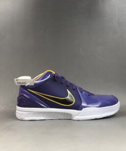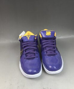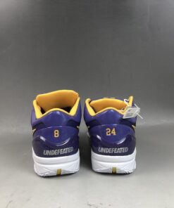The pair for Kyle Kuzma comes dressed in the LA Lakers team colors. It Features an iridescent patent leather upper with carbon fiber detailing, co-branded tongue labels with the signature Kobe logo and the Undefeated’s 5 strike. Finishing off the design is a Zoom Air cushioned midsole and an iridescent Undefeated logo, along with the numbers “8” and “24” heel details honoring Kobe Bryant’s legacy.