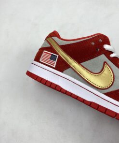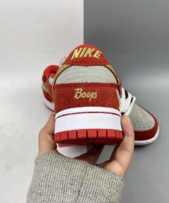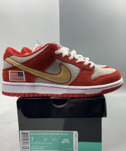This SBTG-crafted take on the “Nasty Boys” is a 1-of-1 bespoke size 8.5 that was originally made for Philip Lipschutz, the man who designed the shoe. The red/gray base and American flag heel patch are both left intact, but the gold Swoosh is replaced by SBTG’s signature camouflage print for an artisanal tweak. Both the tongue tag and lace deubre have been swapped out for signature SBTG embellishments as well. A special custom tag completes the stylings.