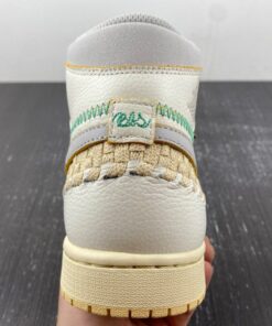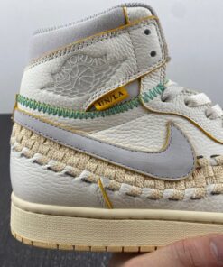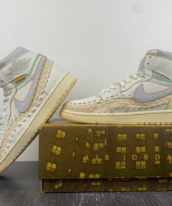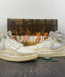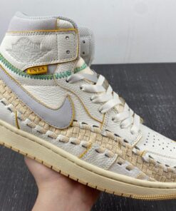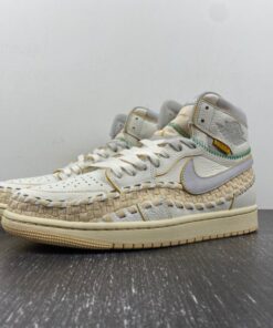 The Union x Air Jordan 1 High OG “Woven” in Sail/Wolf Grey-Muslin-Pale Vanilla is a stylish and unique collaboration between two iconic brands. Featuring a woven design on the upper and a neutral color palette, these sneakers are perfect for adding a touch of luxury to any outfit. Don’t miss out on your chance to own a piece of sneaker history with these limited edition kicks.