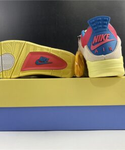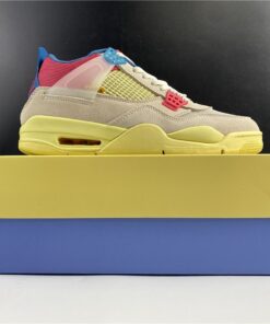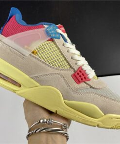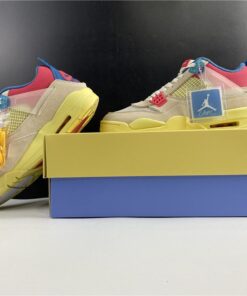 There are two color options that will be available, one dressed in “Off Noir/Brigade Blue-Dark Smoke Grey-Light Fusion Red” and the other is a Union exclusive in a “Guava Ice/Light Bone-Brigade Blue-Light Fusion Red” makeup. Both Air Jordan 4s will release alongside matching Union x Jordan apparel collection.