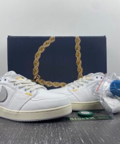 The Union x AJKO 1 Low White/Sail-University Gold-Neutral Grey DO8912-101 is a stylish and versatile sneaker that combines the iconic design of the Air Jordan 1 with Union’s unique aesthetic. Featuring a white, sail, university gold, and neutral grey colorway, this shoe is perfect for adding a pop of color to any outfit. With premium materials and expert craftsmanship, this sneaker is sure to turn heads wherever you go.
