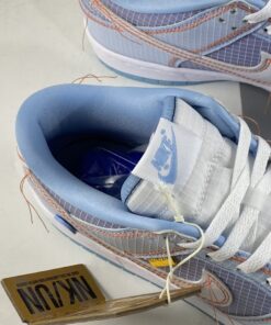 This collaborative take on the Nike Dunk Low will be releasing in two color options. Both come constructed in a gridded, ripstop-like texture atop a White midsole and semi-translucent outsole. Additional details includes signature UN/LA tags at the midfoot with their halo man on the lateral ankle button as well as begin displayed on the forefoot of the outsole. Each pair comes with hangtags made to look like a baggage claim tags housed in special boarding pass-themed packaging.