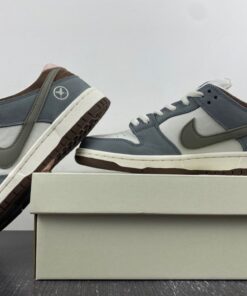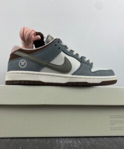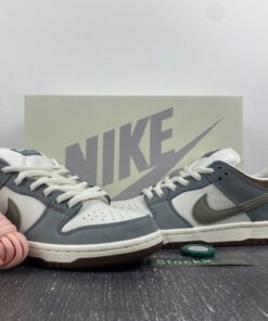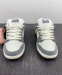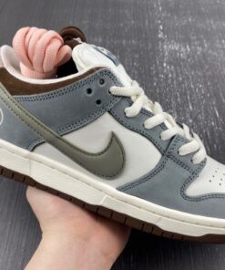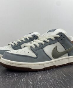 this offering of the Yuto Horigome x Nike SB Dunk Low comes constructed with premium leather, suede, and mesh materials.Front and center, Yuto Horigome is seen right away as his name is stitched on the sneaker’s Nike SB tongue tag.It features a White base with Grey overlays and Chocolate Brown detailing around the collar and rubber outsole. The signature Nike Swoosh adds a tonal element as it appears in an Olive-tinted Grey, which pairs well with the Brown on the ankle collar and outsole. The shoes come with extra set of laces and housed in special packaging.